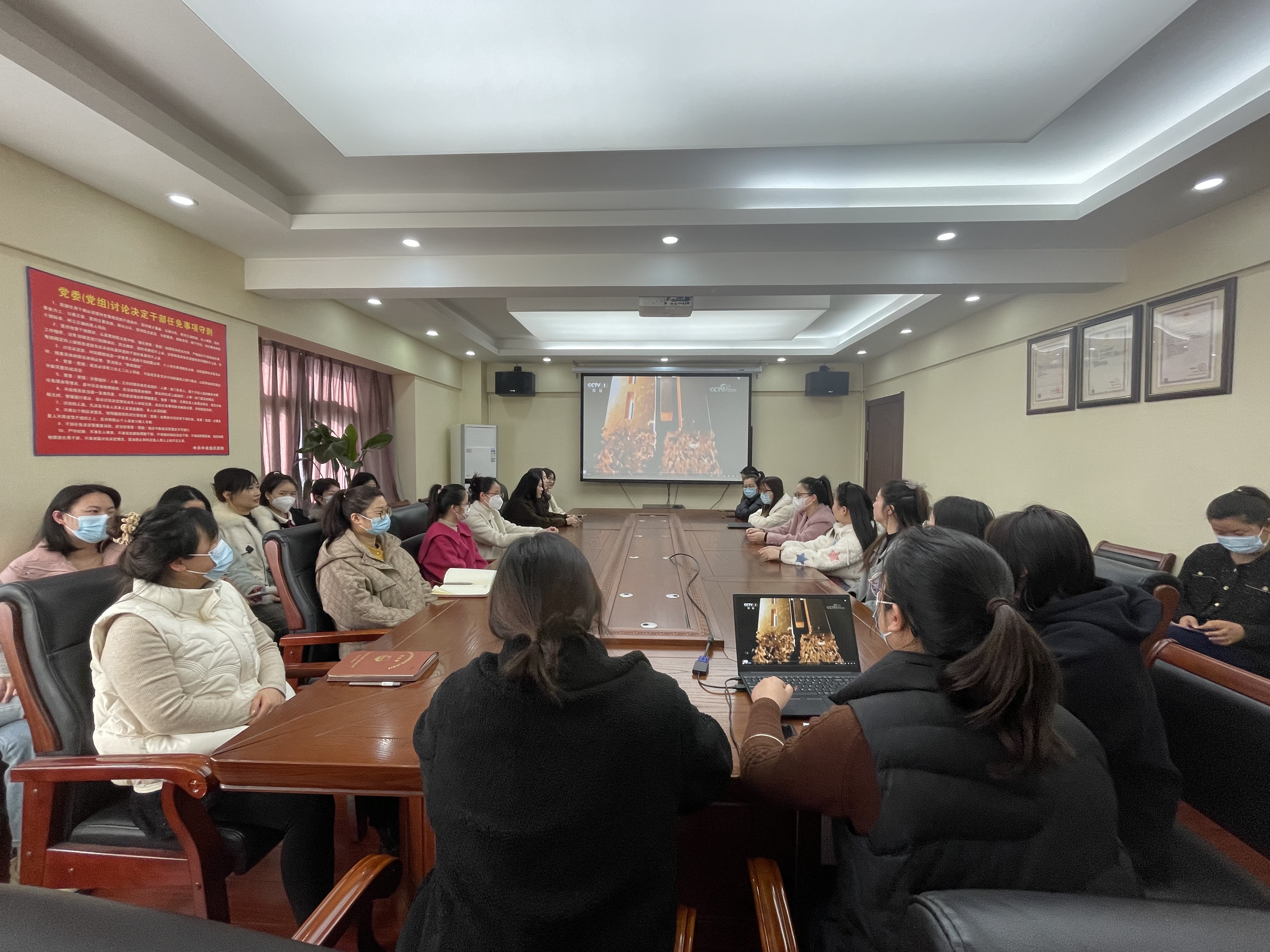 3月7日下午,機(jī)關(guān)工會(huì)組織機(jī)關(guān)職工觀看“奮進(jìn)新征程 巾幗綻芬芳”巾幗勞模走進(jìn)清華大學(xué)活動(dòng)直播。