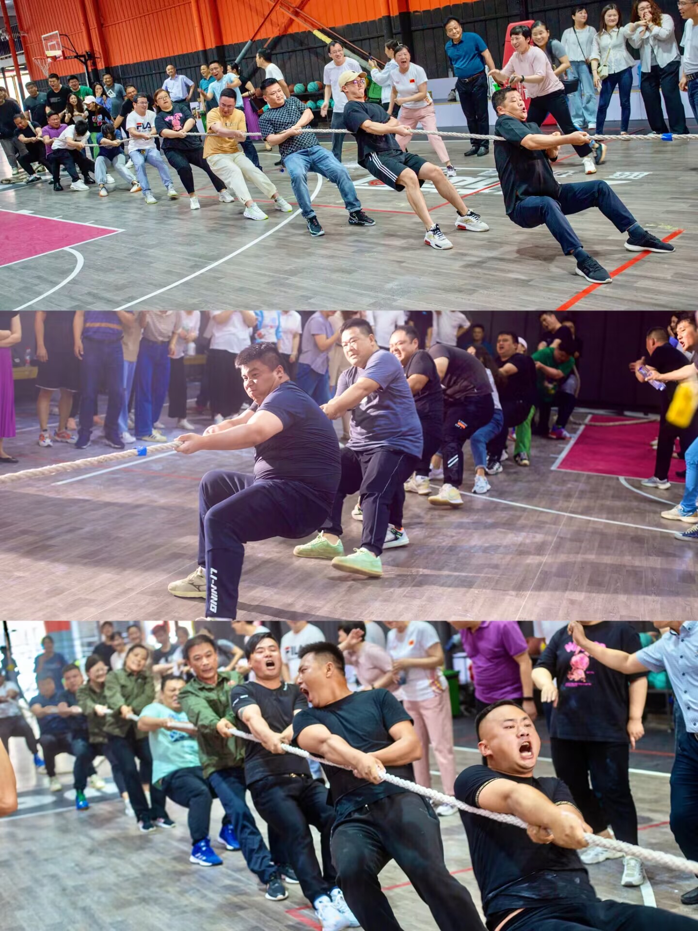5月31日下午,隨著裁判員的一聲令下,公司拔河比賽正式開始了!除了九支參賽隊(duì)伍以外,比賽現(xiàn)場(chǎng)還有不少觀戰(zhàn)的同事們吶喊助威,大家為選手們加油打氣,氣氛活躍又融洽,場(chǎng)面甚是熱鬧?!?、2、3,1、2、3,拉!使勁!”參賽隊(duì)員們喊著整齊的口號(hào),雙手緊抓繩子,手緊挨著手,繃緊雙腿,用盡全身力氣往后拉,身體盡力向后傾。選手們個(gè)個(gè)咬緊牙關(guān),奮力一搏。拔河繩中間鮮艷的藍(lán)色標(biāo)記一會(huì)兒移向這邊,一會(huì)兒又移向那邊,大家互不相讓,不甘示弱!比賽高潮不斷,過程跌宕起伏,時(shí)而穩(wěn)持,時(shí)而拉鋸,你來我往,選手們揮汗如雨,不到最后一刻堅(jiān)決不放棄,眼中始終閃爍著勇往直前、無所畏懼的堅(jiān)定光芒。