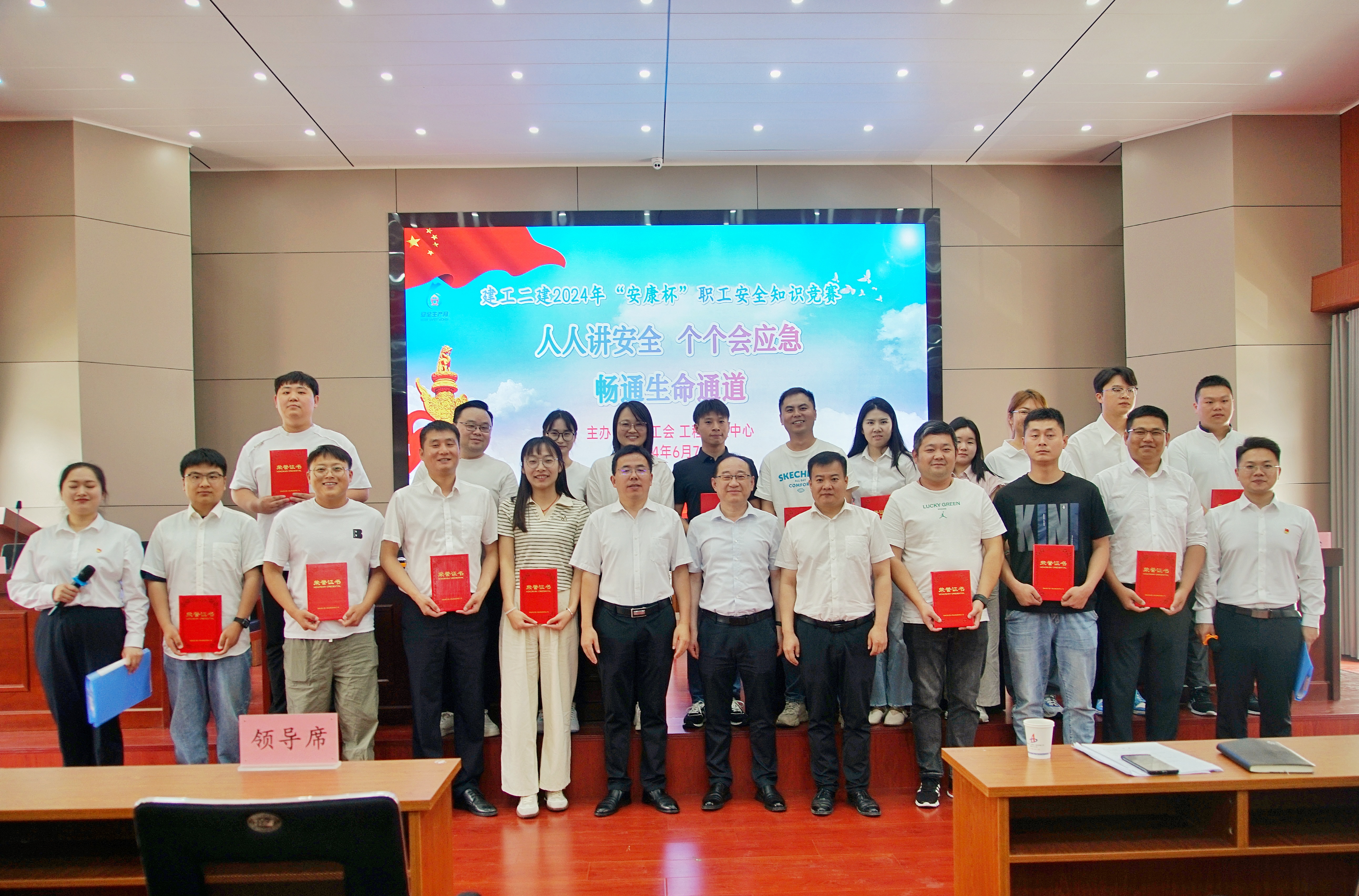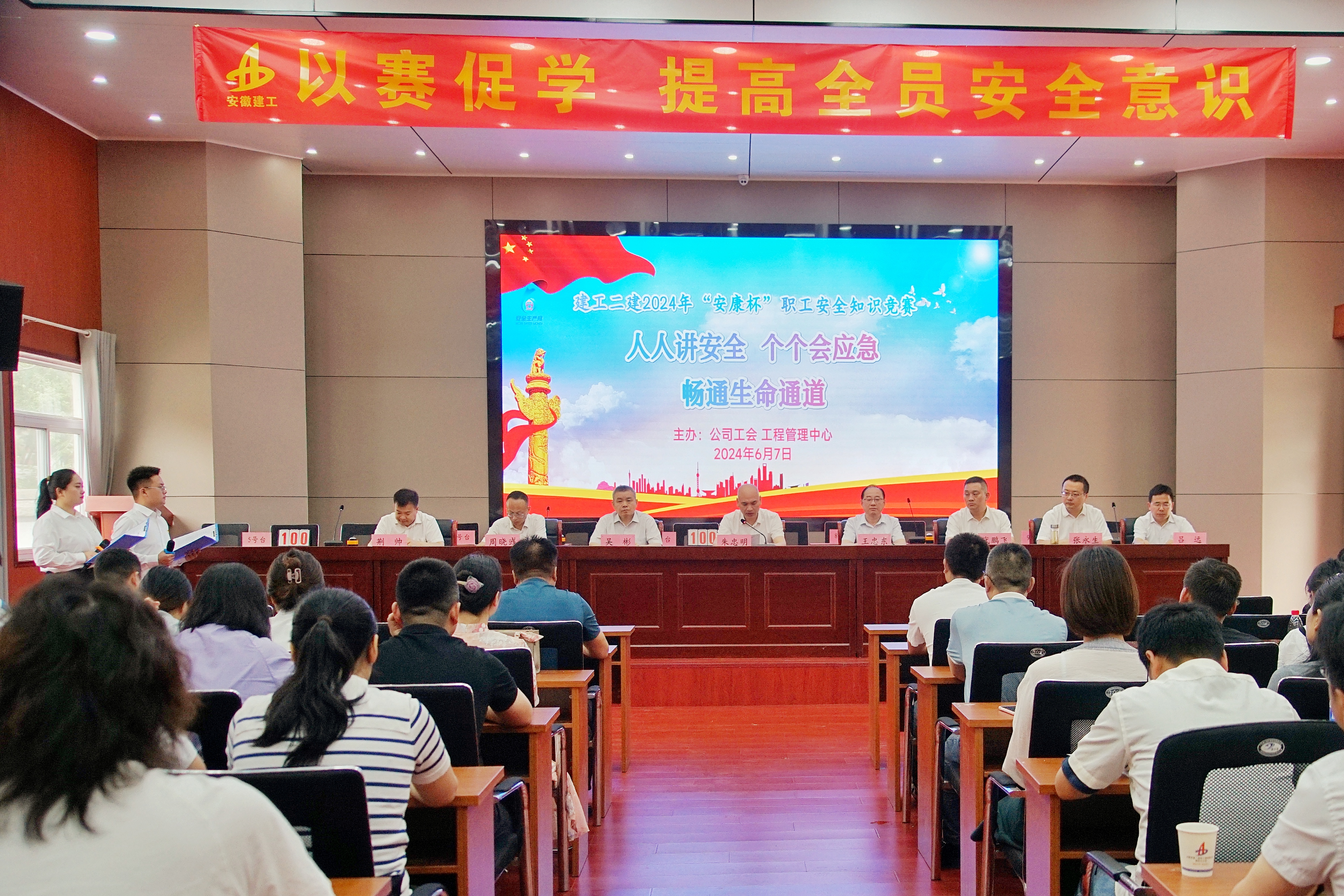 今年6月是第23個全國“安全生產(chǎn)月”。6月7日上午,由建工二建工會、工程管理中心聯(lián)合舉辦的“安康杯”職工安全知識競賽活動如期舉行。建工股份副總經(jīng)理,建工二建黨委書記、董事長朱忠明致開幕辭,活動特別邀請集團(tuán)工程管理中心王忠東主管擔(dān)任比賽評委。公司領(lǐng)導(dǎo)班子成員、機(jī)關(guān)部門負(fù)責(zé)人、所屬單位分管領(lǐng)導(dǎo)及相關(guān)科室成員、項目經(jīng)理代表、參賽職工等百余人參加活動。