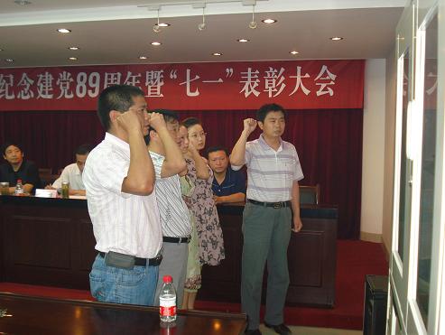 新黨員在表彰大會上進(jìn)行入黨宣誓
