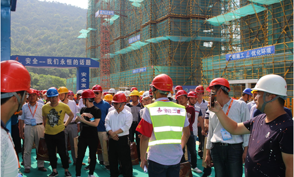 5月27日上午,由宿松縣住建局、安徽二建公司、安建地產(chǎn)宿松有限公司聯(lián)合舉辦的“建筑施工安全質(zhì)量標(biāo)準(zhǔn)化現(xiàn)場觀摩會”在安建·龍溪觀邸項(xiàng)目舉行。宿松縣住建局局長余勁松、副局長劉勝新、二建公司安全總監(jiān)曹建及宿松縣建筑行業(yè)單位近200人參加了此次觀摩會,重點(diǎn)對該項(xiàng)目質(zhì)量安全標(biāo)準(zhǔn)化工地、綠色文明施工、科學(xué)化施工建造、人性化服務(wù)等方面進(jìn)行了全方位的觀摩學(xué)習(xí)。
