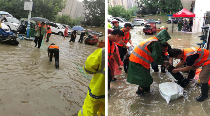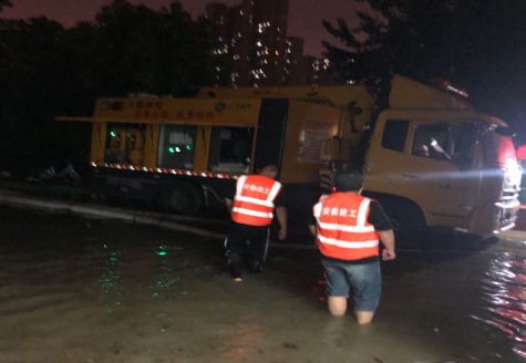 7月18日,合肥遭受77年一遇單日最大降雨。藍(lán)天公寓和大興鎮(zhèn)興泰苑出現(xiàn)內(nèi)澇,情況緊急,人民群眾生命財(cái)產(chǎn)安全遭受威脅,汛情就是戰(zhàn)斗令,二分公司接到指令,馬上組建30余人的抗洪突擊隊(duì),緊急調(diào)運(yùn)大功率水泵2臺(tái),配電箱2個(gè),80米電線電纜,300米水管等防汛物資,20分鐘極速趕到抗洪前線?,F(xiàn)場有的架設(shè)水泵、有的鋪設(shè)電纜、有的配合抽水排澇,分工明確、爭分奪秒。經(jīng)過數(shù)小時(shí)的緊急救援,至凌晨,災(zāi)情得到有效控制。奮戰(zhàn)了8個(gè)小時(shí)的志愿者們才撤出前線。