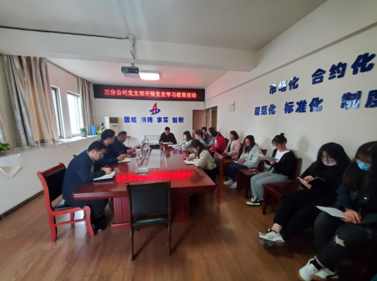 三分公司黨支部開展黨史學習教育活動,分公司機關全體人員參加,活動由支部書記陳習武主持。首先,陳習武帶領大家學習了二建黨發(fā)【2021】13號文《安徽二建公司黨委關于開展黨史學習教育的工作方案》,并就分公司黨支部的黨史學習教育活動做了詳細安排部署,要求全體黨員干部把思想和行動統(tǒng)一到集團、公司黨委的決策部署上來,高標準、高質量完成黨史學習教育各項任務,努力做到學史明理、學史增信、學史崇德、學史力行,以優(yōu)異成績迎接建黨100周年。隨后,陳習武帶領大家上了一堂生動的黨史課?!皬纳虾J瘞扉T到嘉興南湖,一艘小小紅船承載著人民的重托、民族的希望,越過急流險灘,穿過驚濤駭浪,成為領航中國行穩(wěn)致遠的巍巍巨輪?!薄Mㄟ^視頻和講解相結合,為大家敘述了從中國共產(chǎn)黨成立到建立新中國,28年間,黨召開了一次次重要會議。這些會議作出的決策,指引了中國革命的方向,推動了歷史進程,具有里程碑意義。大家紛紛表示,將從黨史中汲取智慧和力量,堅定信仰信念,進一步提高黨性修養(yǎng),不忘初心,以實際行動發(fā)揮好黨員干部的模范帶頭作用,積極投入到干事創(chuàng)業(yè)中去,為分公司的發(fā)展添磚加瓦。