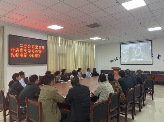 為認(rèn)真貫徹落實(shí)習(xí)近平總書記在中央黨史學(xué)習(xí)教育動(dòng)員大會(huì)上的重要講話精神,進(jìn)一步深入貫徹公司黨委關(guān)于開展黨史學(xué)習(xí)教育的文件精神。4月16日,二分公司黨支部開展黨史學(xué)習(xí)教育活動(dòng),組織黨員和干部職工觀看電影《長(zhǎng)征》及紀(jì)錄片《信仰的力量》節(jié)選《祖國(guó)至上》。