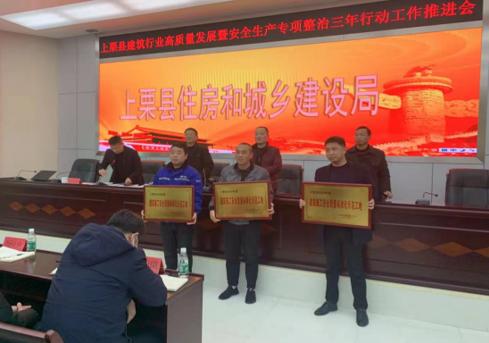 3月9日上午,江西上栗頂峰首府項(xiàng)目在上栗縣“建筑行業(yè)高質(zhì)量發(fā)展暨建筑施工安全生產(chǎn)專項(xiàng)整治三年行動(dòng)工作推進(jìn)會”上被授予2020年度上栗縣“建筑工程質(zhì)量安全標(biāo)準(zhǔn)化示范工地”稱號。