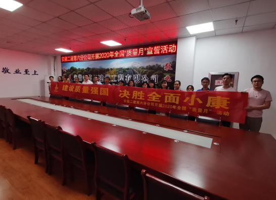 9月3日下午,為積極響應(yīng)國家市場監(jiān)管總局、國務(wù)院國資委、住建部、交通部等16個部門《關(guān)于開展2020年全國“質(zhì)量月”活動的通知》精神,結(jié)合公司“建設(shè)質(zhì)量強國 決勝全面小康”活動主題。六分公司開展了2020年“質(zhì)量月”宣誓簽名活動,技術(shù)質(zhì)量科負(fù)責(zé)人帶領(lǐng)大家進行宣誓,之后在橫幅簽名。