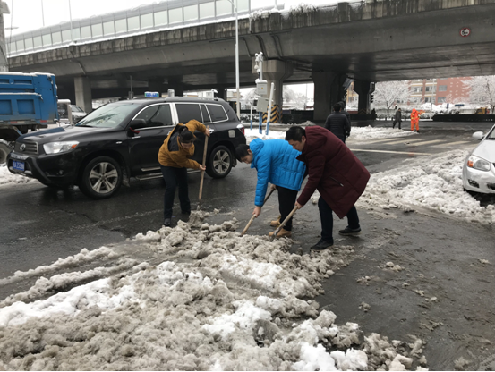 1月4日以來,我市出現(xiàn)了入冬以來范圍最大、強(qiáng)度最強(qiáng)的降雪過程。雪花飛舞,雪景雖美,但大范圍、高強(qiáng)度的降雪也給人們的交通出行和生產(chǎn)生活帶來諸多不便。1月5日早晨,安徽二建機(jī)關(guān)黨支部組織黨員同志20多人開展義務(wù)掃雪活動(dòng)。黨員同志們除了各掃自家門前雪,更管他人瓦上霜。除了清掃機(jī)關(guān)大院、公司門口的積雪外,大家還主動(dòng)清掃裕溪路主干道的路面積雪,清除被積雪壓斷的行道樹。風(fēng)雪中,公司黨員同志們拿著鐵鍬和掃帚清掃積雪,天氣雖然寒冷,但是大家干勁十足,邊鏟邊掃,不一會(huì)兒的工夫,就清理出來一大片路面,為職工群眾安全出入提供保障。大家一邊掃雪,一邊提醒過往居民和車輛“小心路滑,慢點(diǎn)走,注意安全”。熱火朝天的干勁感染了廣大團(tuán)員青年,許多年輕人積極加入勞動(dòng)隊(duì)伍。