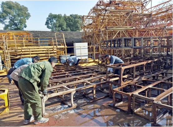 機(jī)械分公司作為公司建筑施工的先鋒隊(duì),機(jī)械設(shè)備是根本。千里之堤潰于蟻穴,為了保證機(jī)械設(shè)備的安全運(yùn)轉(zhuǎn)和使用壽命。3月15日,機(jī)械分公司各部門員工開展了為期三天的大型機(jī)械設(shè)備除銹和噴漆勞動(dòng)。