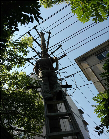 7月23日,原二公司生活基地由于供電線路嚴重老化,發(fā)生線路著火斷電事故,后勤綜合服務(wù)部接到險情報告后,立即組織搶修隊伍奔赴現(xiàn)場,維修人員不懼高溫酷暑,頂著烈日,經(jīng)過幾個小時的高空作業(yè),及時恢復了供電。