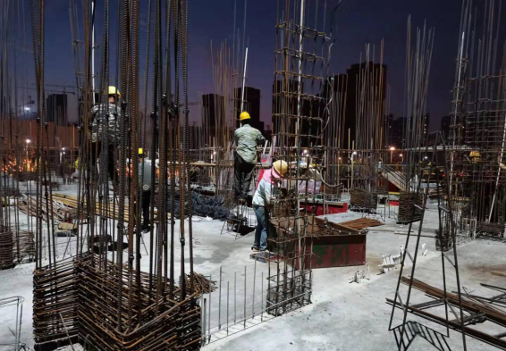 站在±0.0水平面上,上有樓層剛剛起步,下有地庫正在延伸,抬頭可見不斷升高的樓層緊逼著塔吊一升再升,低頭可見基坑里的挖掘機揮舞著鐵臂搶挖土方。在這里,我們見證過木工鐵錘齊揮,只為一天之內(nèi)搶出樓層頂板;在這里,我們見證過鋼筋工彎腰共綁鋼筋,只為確保能早些澆筑混凝土;在這里,我們見證過瓦工交替澆砼兩天兩夜,只為第三天的煥然一新。我們尊敬參與項目建設的每一位勞動者,深知項目成果是大家用辛勤的汗水換來的,在確保安全、質(zhì)量和文明施工的前提下,項目全體成員以更加飽滿的熱情和堅定的信念,為全面完成“學黨史、保安康、搶工期、爭一流”勞動競賽目標任務凝心聚力、全力以赴。