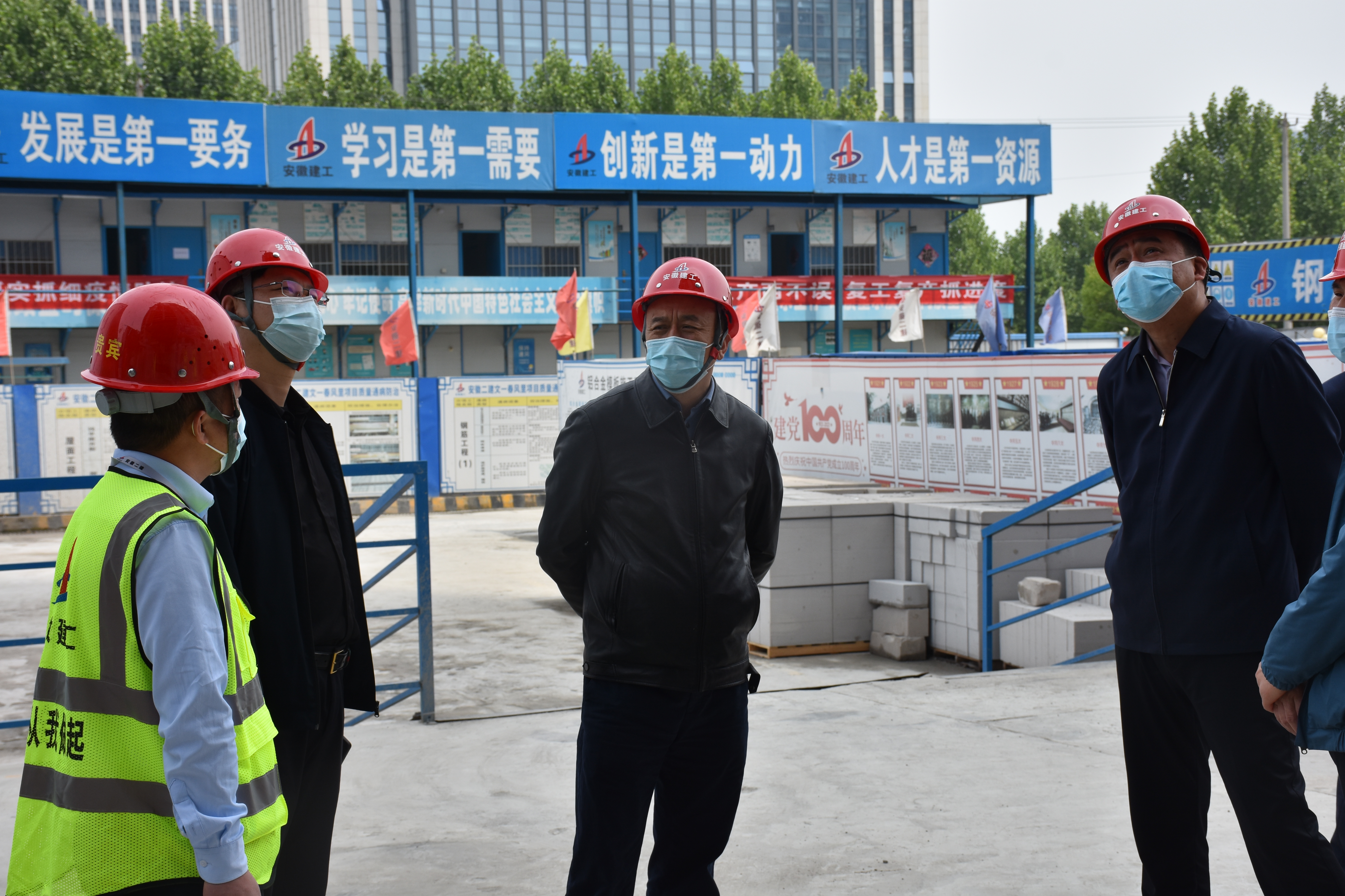 王汪苗現(xiàn)場(chǎng)督導(dǎo)檢查項(xiàng)目部的施工現(xiàn)場(chǎng)、辦公區(qū)域、食堂、生活區(qū)情況,詳細(xì)了解項(xiàng)目部疫情防控工作部署、落實(shí)集團(tuán)及屬地工作要求、常態(tài)化疫情防控措施及防疫物資儲(chǔ)備等有關(guān)重點(diǎn)工作。在聽取項(xiàng)目部關(guān)于當(dāng)前生產(chǎn)及疫情防控工作的匯報(bào)后,王汪苗對(duì)項(xiàng)目工作給予肯定,并指出,文一春風(fēng)里項(xiàng)目作為二建首個(gè)超高層工程,在抓好履約工期及安全生產(chǎn)的同時(shí)必須嚴(yán)把防疫關(guān),確保廣大職工生命健康安全。