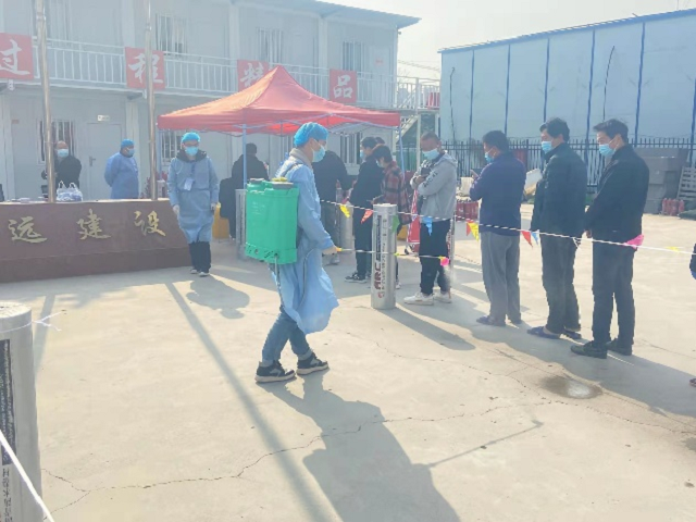 宿遷市進(jìn)入4月份以來(lái)疫情較為嚴(yán)重,自4月1日起,全市分區(qū)域進(jìn)行封控、管控,上級(jí)政府部門要求施工單位積極配合協(xié)助開展防疫工作。疫情就是命令,接到任務(wù)后,項(xiàng)目經(jīng)理劉闖立即召開防疫工作會(huì)議,全面落實(shí)各項(xiàng)疫情防控措施。設(shè)置單獨(dú)的隔離觀察室,用于需臨時(shí)隔離觀察的人員單獨(dú)生活居??;準(zhǔn)備口罩、測(cè)溫計(jì)、消毒液等防疫物資;排查兩周內(nèi)往來(lái)史、接觸史,杜絕疫情的輸入性、擴(kuò)散性蔓延;對(duì)所有進(jìn)出施工區(qū)、辦公區(qū)、生活區(qū)人員進(jìn)行實(shí)名制登記和現(xiàn)場(chǎng)消毒殺菌;嚴(yán)格落實(shí)施工工地封閉管理,全面管控人員出入工地,無(wú)關(guān)人員不得進(jìn)入工地,項(xiàng)目部人員停止休假、探親和聚集活動(dòng)。除此之外,3月26日起,政府在項(xiàng)目部設(shè)置了核酸檢測(cè)站點(diǎn),目前已連續(xù)進(jìn)行了19次核酸檢測(cè),包括附近工地和居民,每天約一千人,工作量極大。項(xiàng)目部志愿者積極配合現(xiàn)場(chǎng)防疫工作,對(duì)每個(gè)進(jìn)入現(xiàn)場(chǎng)的人員進(jìn)行掃碼、登記、測(cè)量體溫,為打贏疫情防控阻擊戰(zhàn)貢獻(xiàn)國(guó)企力量。